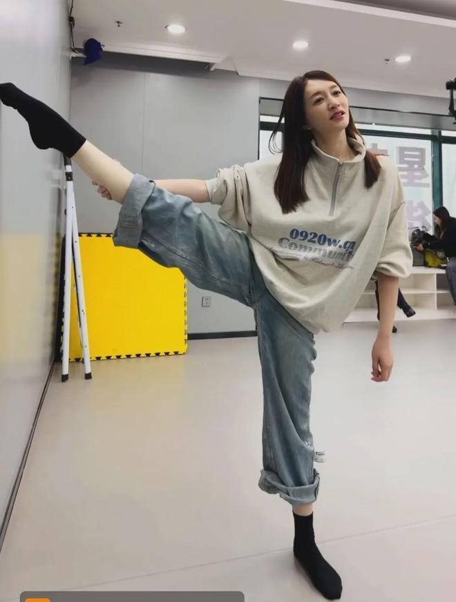 为了备赛,她推掉了3部戏,每天排练超10小时,累到膝盖旧伤复发,训练时站姿都变成了“内八”,看得人又好笑又心疼。