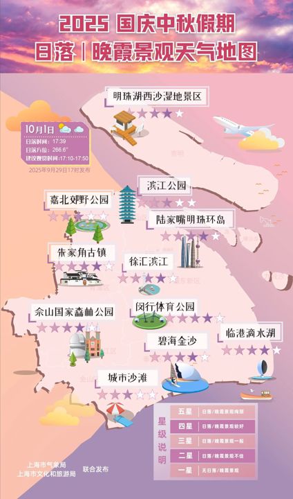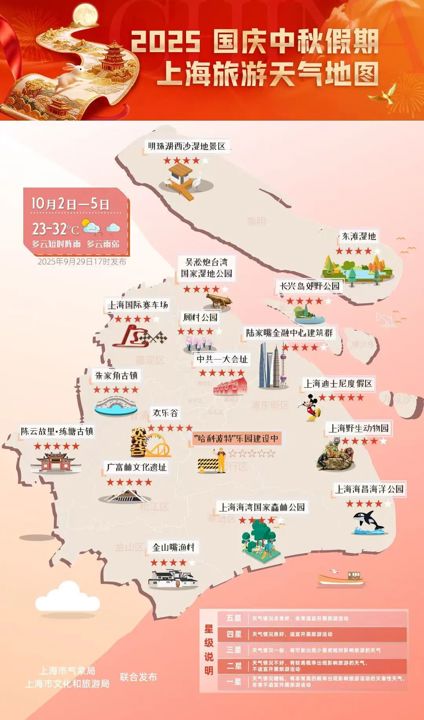 今天,上海市气象局和上海文旅局联合发布了2025国庆假期上海旅游天气地图。