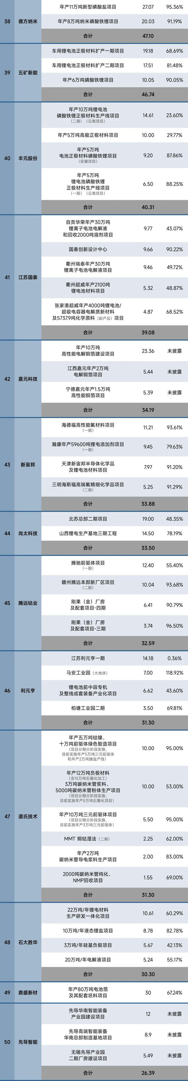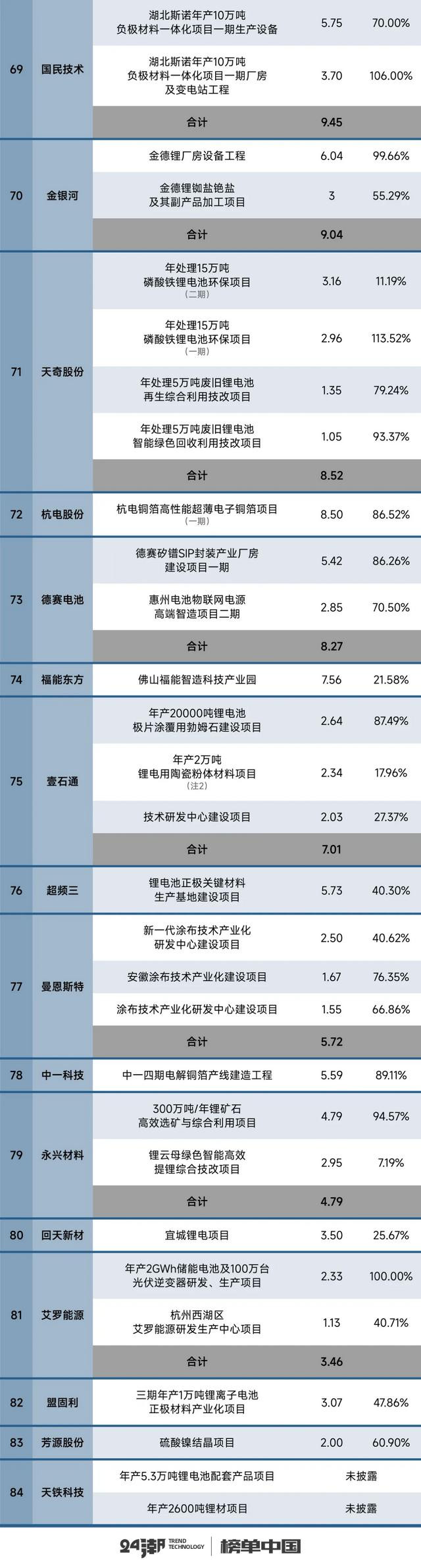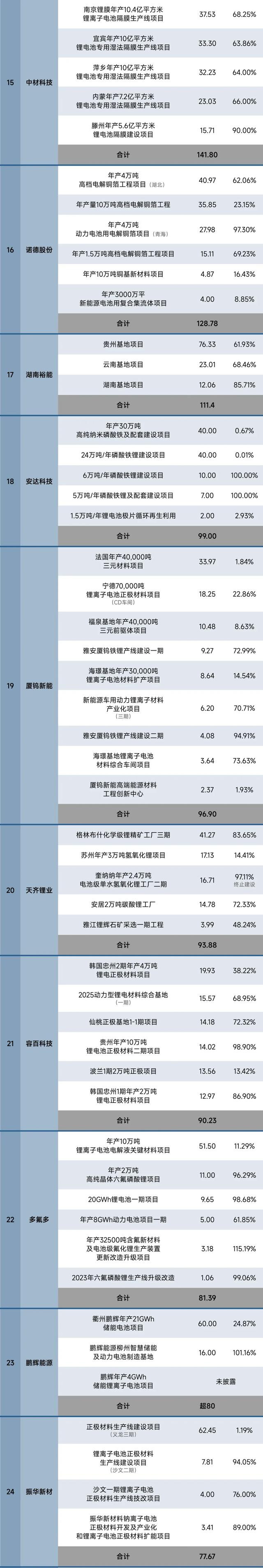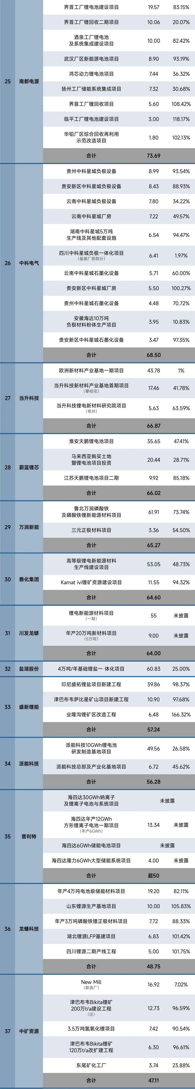 据24潮产业研究院(TTIR)统计,截止2024年末,国内仅83家锂电上市公司超320个超级工程(单个项目投资预算在亿元以上)进入执行(施工)阶段,项目总投资预算超10000亿元,约同比增长28%。涵盖动力与储能电池制造、钴锂镍等上游原材料、正负极材料、电解液、锂电隔膜、锂电铜箔等整个锂电产业链。